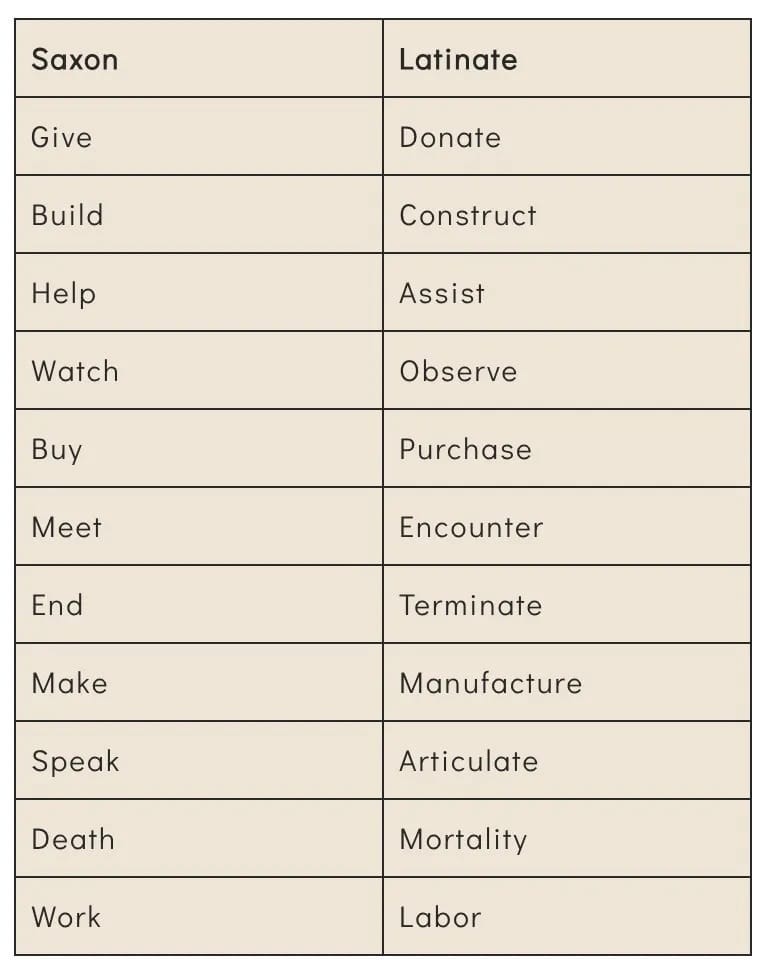 Latinate is the language of expertise. One might even say the language of the elite. You speak English, and yet you’ve probably never noticed that it’s actually two distinct languages. It’s hard to see a system when you’re in it. Yet recognizing the system is the first step in subverting it.