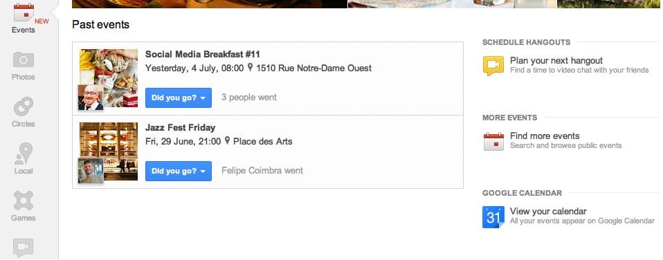 Google’s making other efforts to consolidate, too. They’re also promoting across products—telling Google Calendar users that they can create a G+ event and it will get things like hangouts and the ability to share things, and tying G+ events into its staple calendar product.