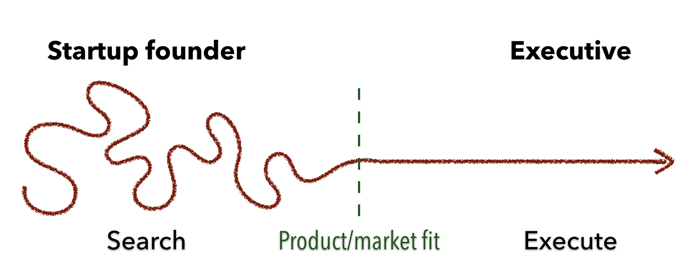 As VC wisdom goes, this is when the market pulls product out of the startup. At that point, the organization switches from searching—constant discovery and iteration—to execution. You can’t play with customers any more. They rely on you.