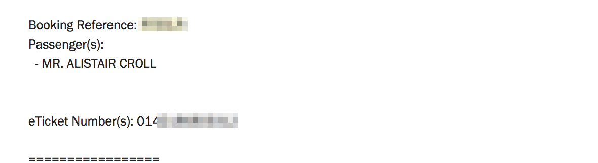 Anyway, a couple of days later I get a copy of the ticket receipt. And if you’ve read this far, well, let’s just say it’s worth it. Because after a human spends up to 21 days looking for a ticket number that’s in an electronic system, this is what you get: