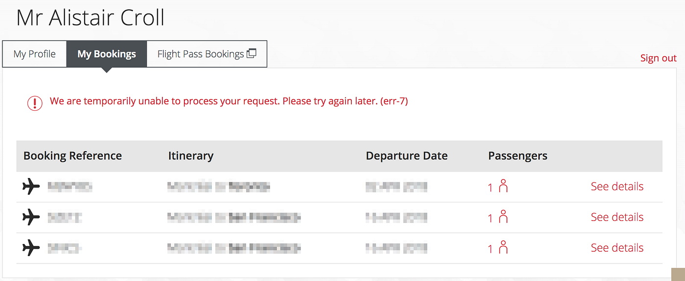 Now, pretty much every other travel site has a way to look up past purchases. When you’re logged in, you generally get a list of past transactions. In some jurisdictions this is even mandated by law as a form of consumer protection. I mean, here’s United: