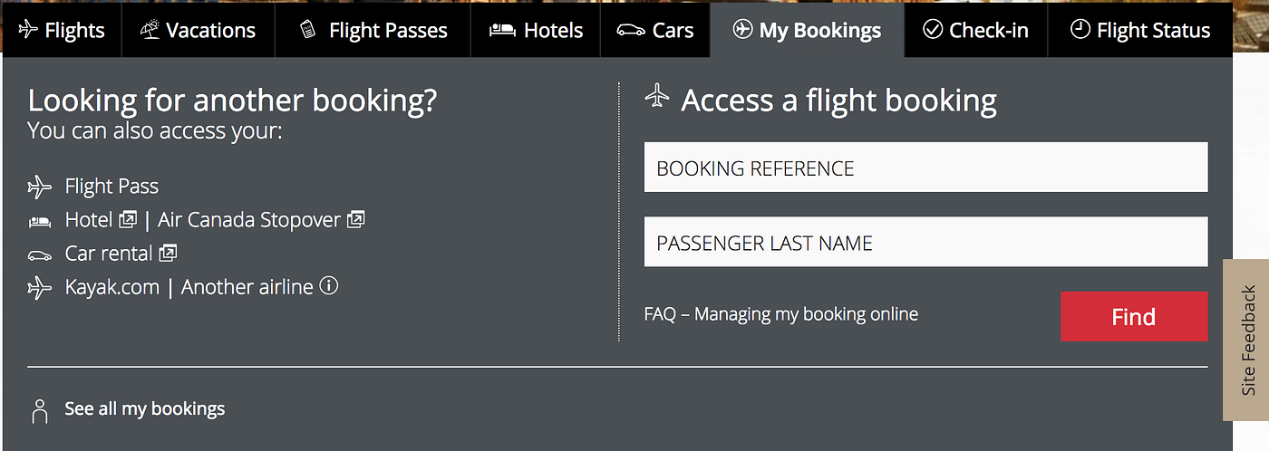 A couple of weeks ago I needed the receipt, and couldn’t find it. I search in vain using the six-character code in my inbox. Then I go to Air Canada and click on “my bookings.”