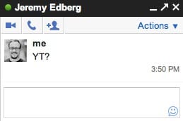 Most technical workers are never far from chat, instant messenger, IRC or Skype. Because they’re logged in—but not necessarily at their desks—many IM chats begin with a simple YT. It’s the phone ring of the digital age.